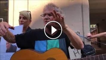 לאחר שמצאנו את הבית בו נולד נחום היימן, הגענו אליו, קבוצת מטיילי "סיפור ושיר" בהדרכת תחיה תמרי ואני, ואיתנו, בתו הזמרת סי היימן, עם אלעד שודלר. צילום יעל ניידיס. 31.7.2018