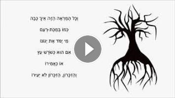 כמו במכת-רעם / ומי ימוד את יגונו / אם הוא כשורש עץ / או הוא כאמירו / והזיכרון יעירו אל חלקת-יער / אשר הוא והנער חצו / בסבכי-אורניה / או אל אותה פאת-שדה שכוחה / שהם היו אחרוניה / לעת היאסף המקנה / באסוף השמש מן האדמה / שארית קרניה / ואין צועק ואין עונה / חרישית תיאסף חלקת-השדה / אל יגוניה / ורק אב ובנו הולכים / שניהם יחדיו / ולא אש ולא עצים / ולא שה ולא שופר / ולא הייתה עוד כאהבה ההיא / על עפר